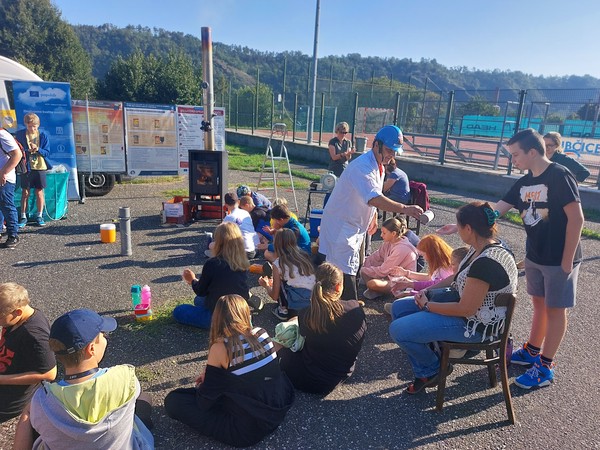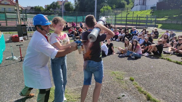 Dopolední program byl pro naše mladé vědce základní školy plný vzrušení a poznání. Smokeman a jeho tým jim přinesli nejrůznější vědecké pokusy, které se věnovaly fyzice, chemii a přírodovědě. Děti měly možnost nejen pozorovat, ale také aktivně se zapojit do experimentů. Několikrát se jim podařilo doslova “rozhodit” energii a všechny pokusy byly doprovázeny ohromujícími výbuchy, které si jistě navždy zapamatují.
